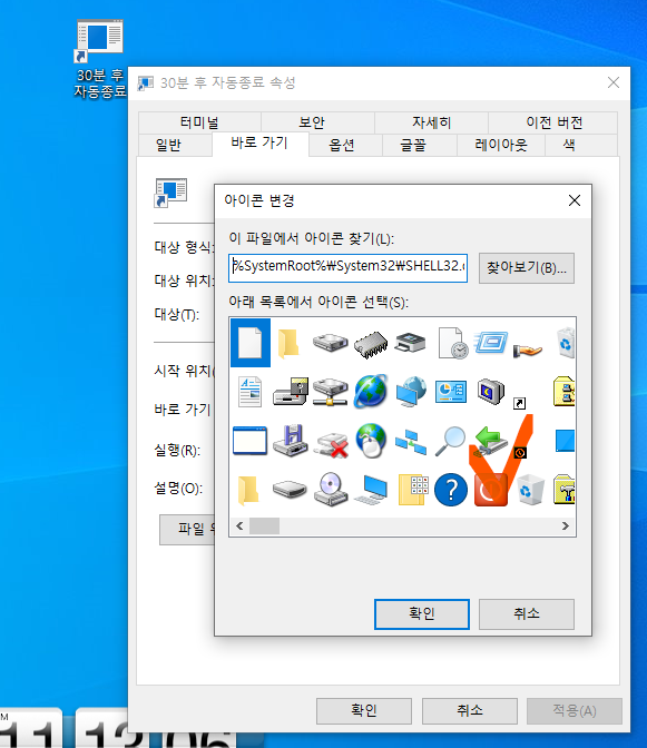 생성된 아이콘에 마우스 우클릭, [속성] 으로 들어가서